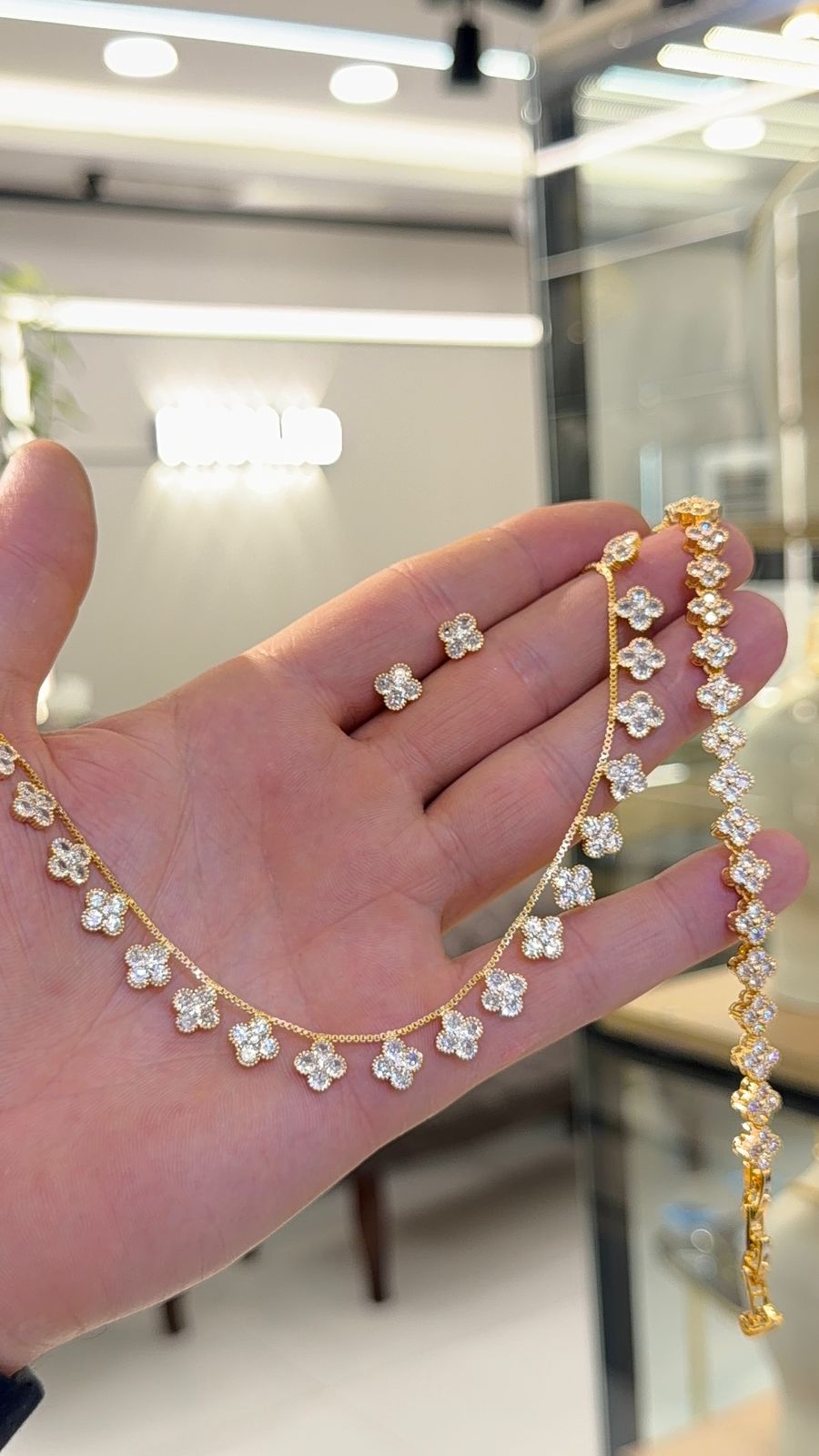 طقم متكامل (قلادة + سوار + أقراط) بتصميم عصري وألوان مميزة يليق بالمناسبات والإطلالات اليوم