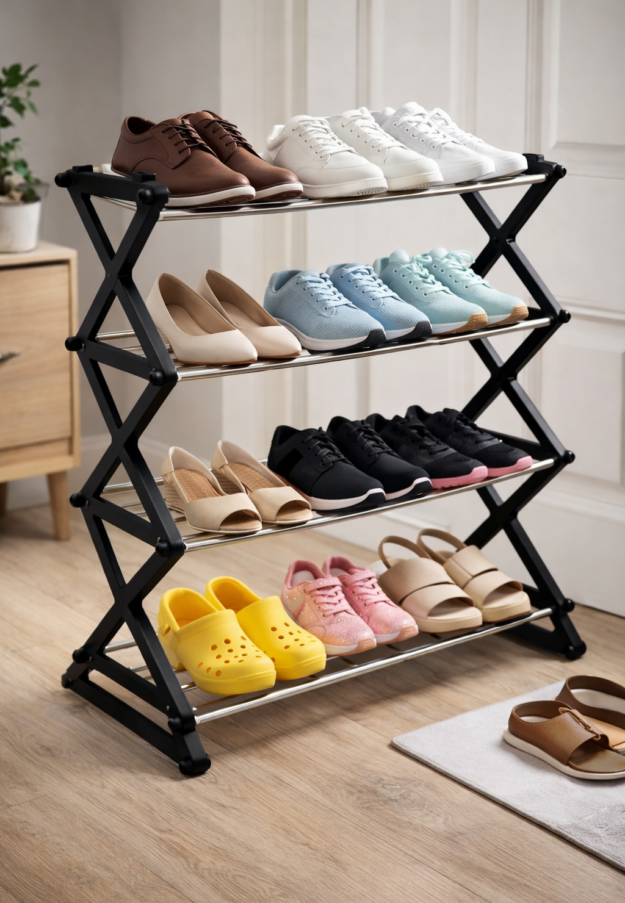 منظم أحذية عملي بتصميم “X” المبتكر، يجمع بين القوة والشكل العصري ليناسب مداخل المنازل والممرات الضيقة بكل كفاءة.